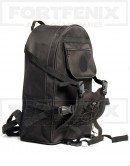 Compartimento externo frontal e fitas para fixar bagagem extra. Um bolso pequeno com abertura e fechamento em zíper. Três bolsos externos em tela de fácil acesso para garrafa, objetos. Alças acolchoadas, alça de mão e cinto de apoio na cintura.