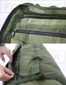 Abertura e fechamento com zíper e reforço em velcro, contém dois cursores que possibilitam uso de cadeado.